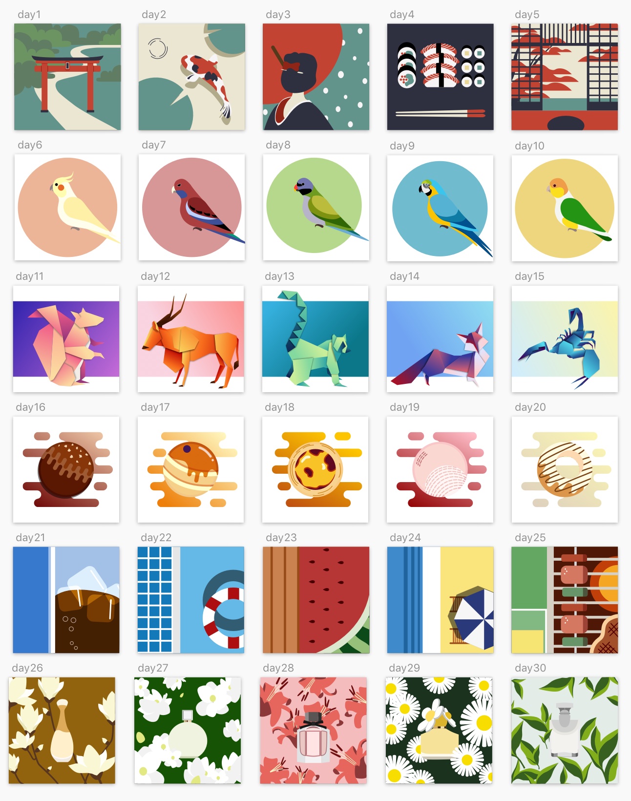 用sketch完成30天插图挑战,每五天一个系列……最难的还是想每个系列的主题了!